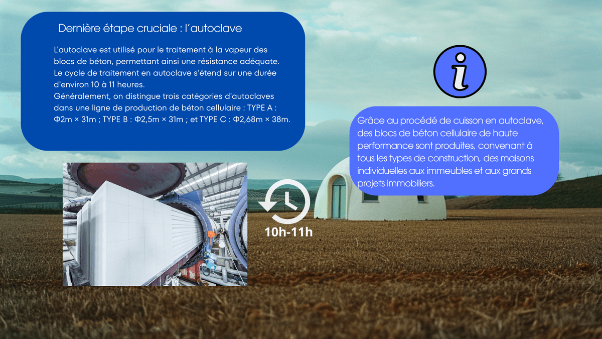 Après le moulage, le matériau est soumis à un processus de durcissement en autoclave, par vapeur d’eau à haute pression et à haute température, pendant environ 10 à 11 heures.
